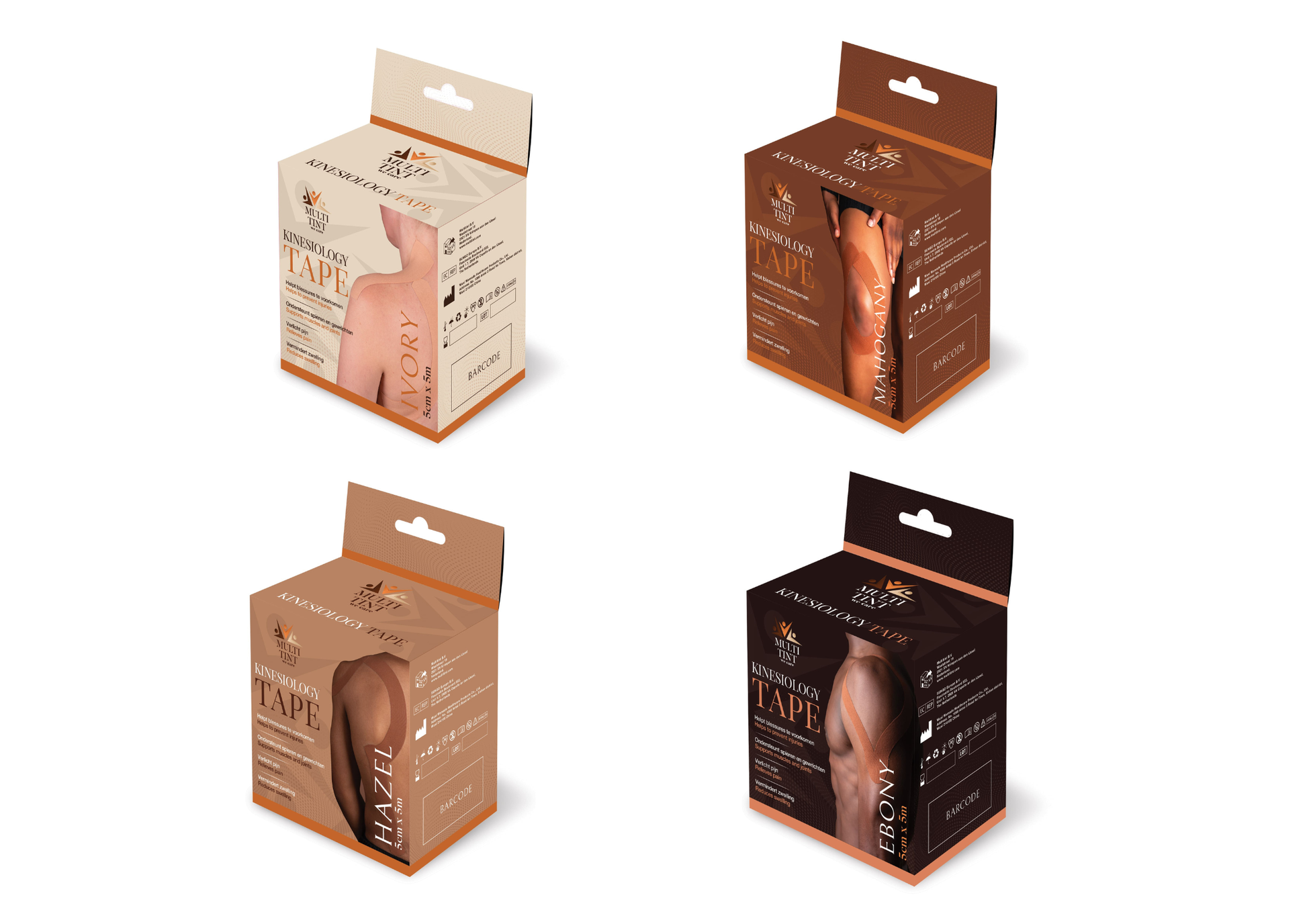 In deze bundel vind je alle kleuren – Ivory, Hazel, Mahogany en Ebony – zodat je altijd de juiste tint kiest, of je nu sport, traint of herstelt.